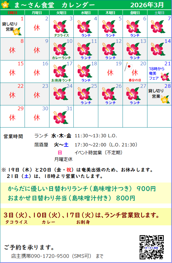 3月19日(木)から20日(金)は奄美出張のため、お休みいたします。