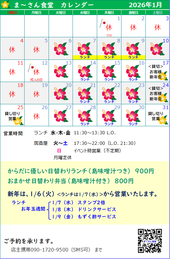 1月最終週のランチが抜けておりましたので、修正いたしました。失礼しました。